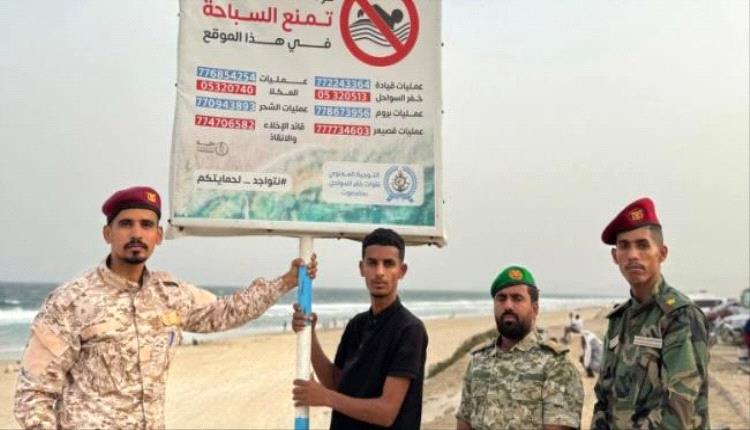 شملت الإجراءات وضع لوحات إرشادية ولافتات تحذيرية، توزيع البروشورات التوعوية، ونشر الوحدات لتأمين الشواطئ من المكلا حتى الشحر وقصيعر وبروم.