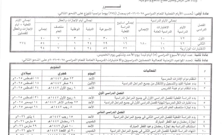 وزارة التربية تعلن يوم ٣١ أغسطس المقبل موعداً لانطلاق العام الدراسي الجديد ٢٠٢٦/٢٠٢٥م
