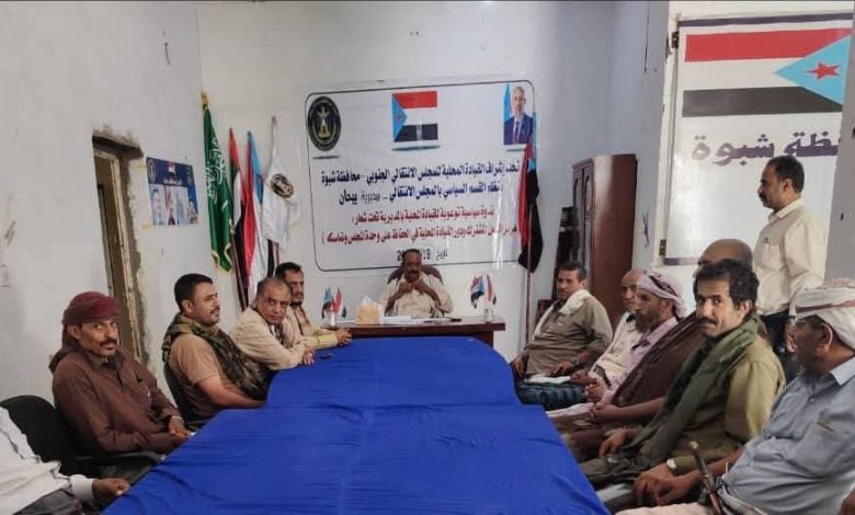 انتقالي بيحان ينظم ندوة سياسية توعوية لأعضاء القيادة المحلية بالمديرية