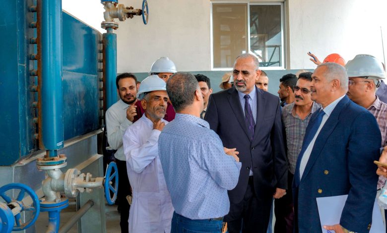 الرئيس الزُبيدي يتفقد سير الأعمال الجارية لإعادة تشغيل مصافي عدن