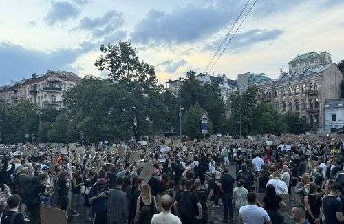 وردا على هذه الخطوة، خرج آلاف المواطنين الأوكرانيين، معظمهم من الشباب، في مظاهرات حاشدة في وسط العاصمة كييف، متحدين بذلك حظر التجمعات المفروض بموجب الأحكام العرفية منذ بداية الحرب. وتجمع المحتجون بالقرب من المسرح الوطني على بعد أمتار فقط من المقر الرئاسي، حاملين لافتات تطالب بالحفاظ على استقلالية هيئات مكافحة الفساد.