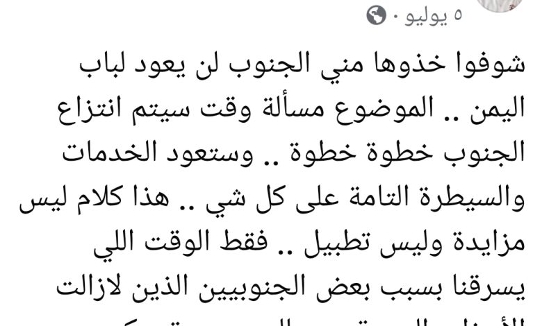 الجنوب لن يعود لباب اليمن… مسألة وقت فقط