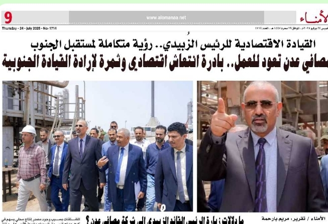 إعادة تشغيل مصافي عدن ليست خطوة عابرة، بل بداية حقيقية لمسار اقتصادي يعيد للجنوب مكانته الطبيعية. وها هي القيادة الجنوبية، وعلى رأسها الرئيس عيدروس الزُبيدي، تؤكد بالعمل لا بالشعارات، أن إرادة الشعوب لا تُقهر، وأن الجنوب ماضٍ في طريقه نحو استعادة دولته ومؤسساته.