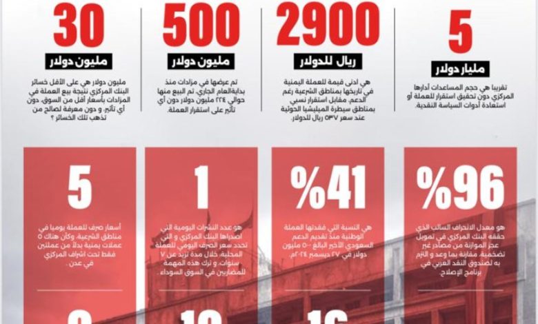 وأضافت أن البنك ضخ ما يقارب 3 مليارات دولار في السوق عبر المزادات لبيع العملة الصعبة، لكنه تكبد خسائر مباشرة تجاوزت 30 مليون دولار بسبب بيع العملات بأسعار أقل من سعر السوق الحقيقي، وبعيدًا عن الشفافية والضوابط الرقابية، دون مشاركة الجهات المعنية في الإشراف أو التقييم.