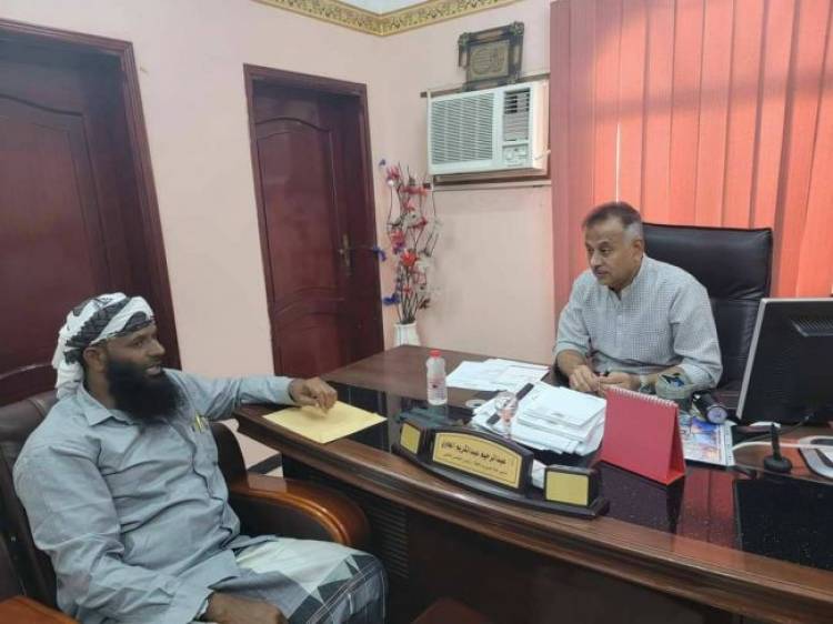 استقبل الاستاذ عبدالرحيم جاوي مدير عام مديرية المعلا في مكتبه صباح اليوم الشيخ صالح الخزور شيخ جزيرة ميون وقائد المقاومة الجنوبية في الجزيرة.