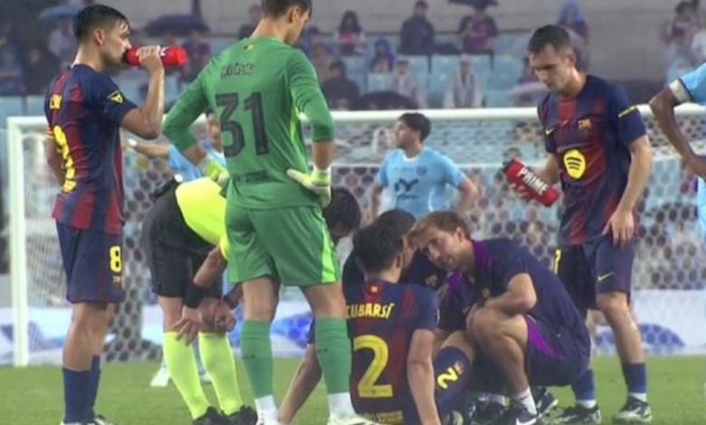 تعرض مدافع نادي برشلونة باو كوبارسي لإصابة قوية خلال فوز “البارسا” الساحق على دايغو الكوري الجنوبي بخماسية نظيفة اليوم الاثنين، وذلك ضمن الجولة الآسيوية للنادي الكتالوني.