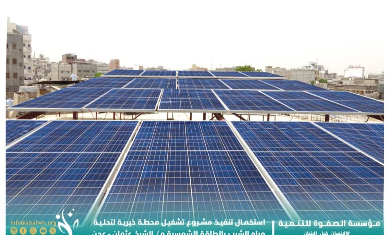 مؤسسة الصفوة تستكمل تنفيذ مشروع تشغيل محطة تحلية مياه الشرب بالطاقة الشمسية بالعاصمة عدن