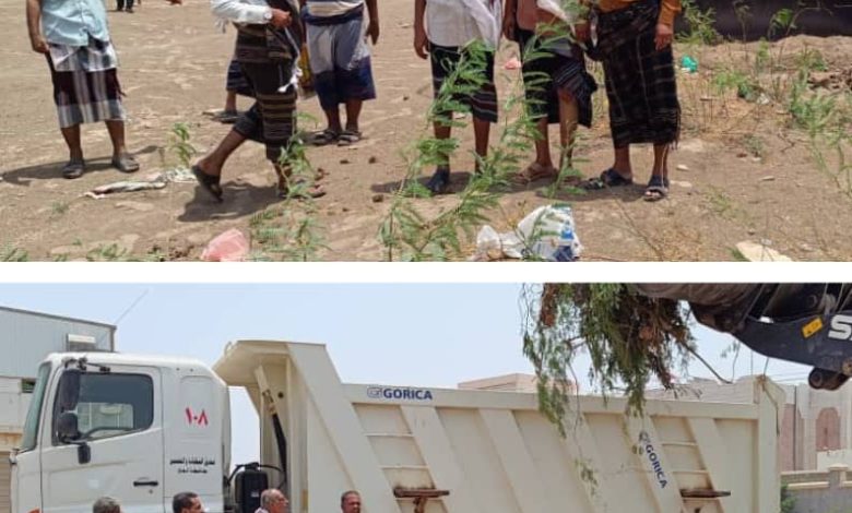 مدير مكتب الشباب والرياضة بلحج يدشن حملة لإزالة الأشجار الشوكية(السيسبان) وتسوية أرضية ملعب حمدين بالحوطة