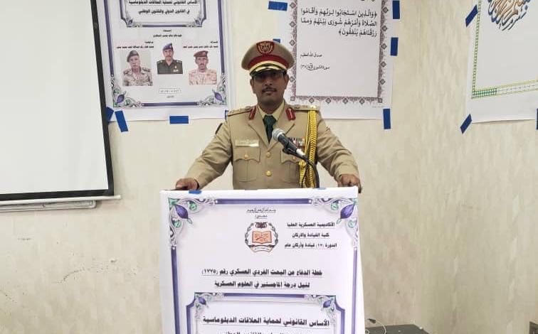 وناقش العقيد الشطحي بحثه الموسوم بـ: “الأساس القانوني لحماية العلاقات الدبلوماسية في القانون الدولي والقانون الوطني”.