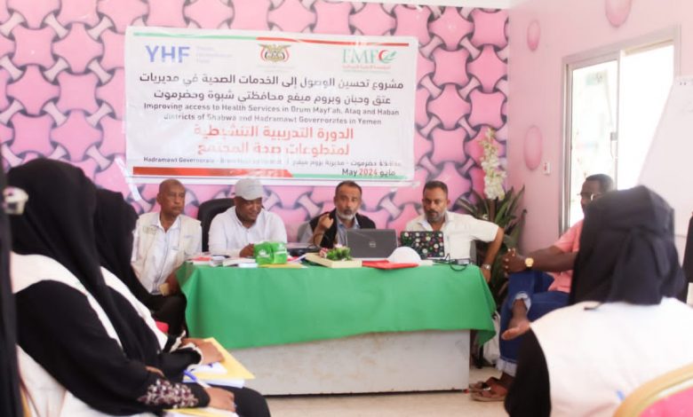 وفي الدورة التي درب خلالها الأستاذ سالم سعيد بارميل والدكتورة سلوى حمران، تم تناول العديد من المحاور المهمة ذات العلاقة والاختصاص بالمشروع أبرزها .. ” تغير السلوك الصحي، تكملة تغذية الأم الحامل والمرضع، النظافة والصحة، الأمراض المعدية، الكوليرا تنظيم الأسرة، سوء التغدية، وتعزيز النمو وعلامات الخطورة أثناء مرض الطفل والحمل والولادة، إضافة إلى التخطيط لجلسات التثقيف ومجموعات الدعم بين الأمهات، والسجلات والتقارير وإستمارات الحالة” .