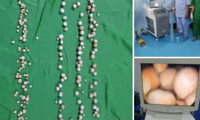 استخراج 193 حصوة من مثانة مريض بالمنظار في المستشفى التخصصي الخيري بمدينة عزان`