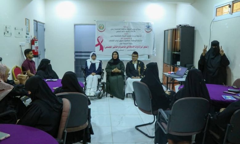 برعاية محافظ العاصمة عدن .. بدء دورة تمكين المرأة ذوات الاعاقة في المناصرة والتأثير المجتمعي بعدن