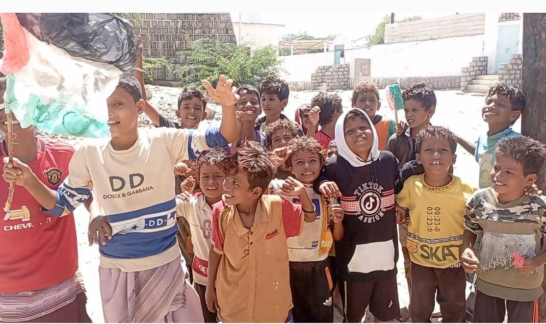 اطفال قرية امبسطي بمديرية أحور يخرجون في مسيرة تضامنية مع إخوانهم أطفال غزة