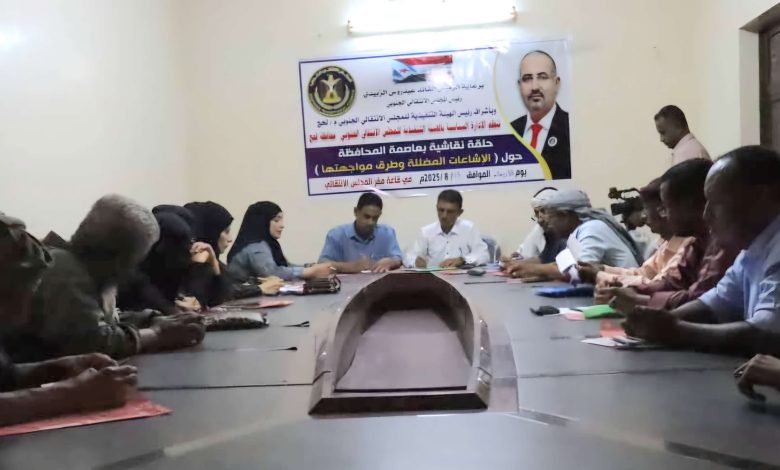 انتقالي لحج ينظم حلقة نقاشية عن مواجهة الشائعات المضللة