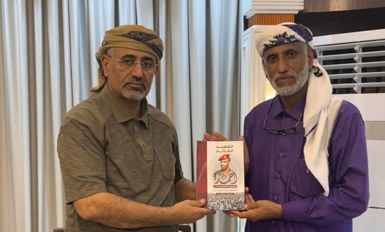 الشيخ علي السليماني يهدي الرئيس الزبيدي نسخة من كتاب سيرة وتضحيات شقيقه الشهيد القائد أحمد محسن السليماني