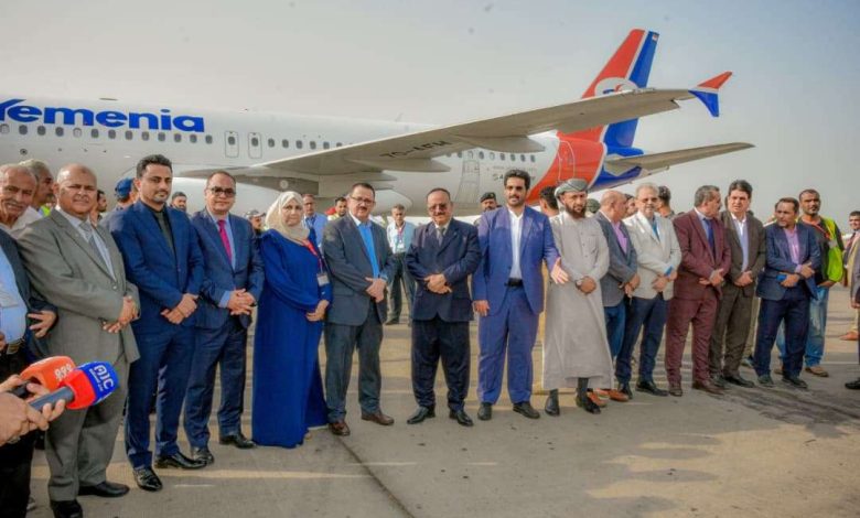 وزير النقل يستقبل وصول الطائرة الجديدة “320 A المسماه “مملكة أوسان” الى مطار عدن الدولي