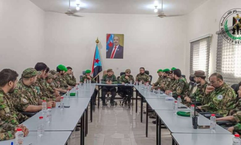 العقيد السرحي يترأس اجتماعاً بقيادات عمليات الحزام الأمني بعدن ويؤكد أهمية الانضباط ورفع كفاءة الأداء