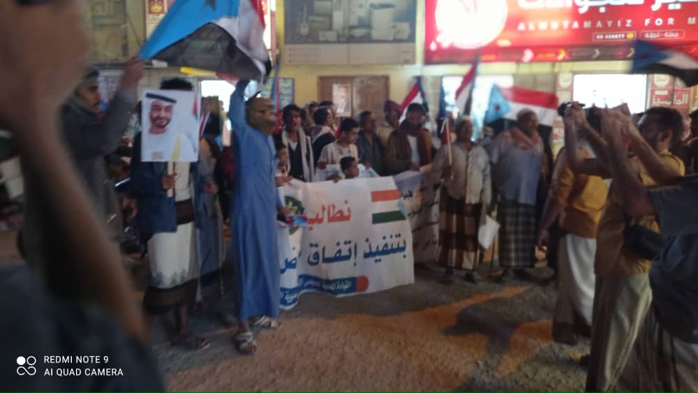 وذلك للمطالبة بتنفيذ اتفاق ومشاورات الرياض بإخراج قوات المنطقة العسكرية الاولى وإحلال قوات النخبة الحضرمية بديلا عنها، ووقف غلاء الأسعار وارتفاع العملة المحلية أمام العملات الاجنبية.