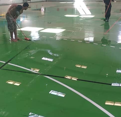 يبذل مدير الصالة الرياضية بمحافظة لحج، الأستاذ فكري البدوي، جهوداً طيبة بالتعاون مع مجموعة من الشباب المتطوعين لإخراج مياه الأمطار التي تسربت إلى أرضية الصالة، وذلك حرصاً على عدم تأثر أرضية الترتان بالمياه وحفاظاً على سلامة الصالة وتجهيزاتها.
