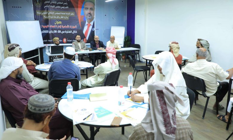 دشنت دائرة الفكر والإرشاد في الأمانة العامة لهيئة رئاسة المجلس الانتقالي الجنوبي، اليوم الثلاثاء، دورة تدريبية حول المهارات الأساسية لإدارة الحملات التوعوية.