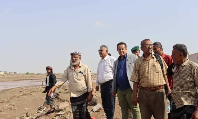 رئيس انتقالي لحج يتفقد الأضرار الناجمة عن السيول في مدينة الوهط