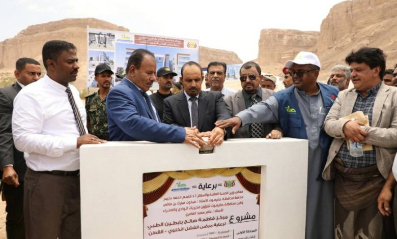 المحافظ بن ماضي يضع حجر الأساس لمبنى مركز فاطمة بابطين الطبي بالقطن (المرحلة الأولى)