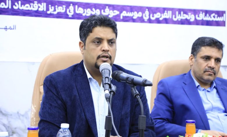 وفي هذا السياق تأتي ورشة عمل عن الفرص الاقتصادية في موسم خريف حوف التى نظمها مركز الدراسات والبحوث وأبحاث البيئة بجامعة المهرة بالتنسيق مع مركز مداد حضرموت للابحاث والدراسات الاستراتيجية و دشنت اليوم بحضور رئيس الجامعة /الدكتور أنور كلشات وبمشاركة وكيل المحافظة المساعد الأستاذ / حسين علي المسعدي وبحضور العديد من الشخصيات الرسمية ومدراء السياحة والثقافة في المحافظة وأعضاء هيئة التدريس والباحثين والشخصيات الاجتماعية .