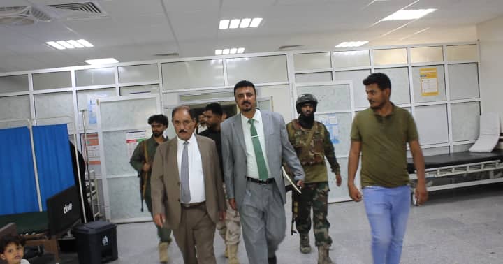 فريق التوجيه والرقابة الرئاسي وقيادة السلطة المحلية يزورون مستشفى الضالع المركزي