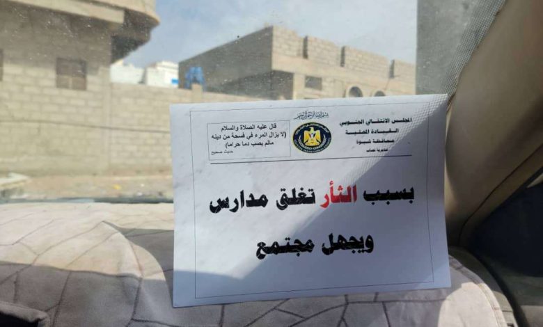 دشنت الهيئة التنفيذية للقيادة المحلية للمجلس الانتقالي الجنوبي في مديرية نصاب بمحافظة شبوة، اليوم الأحد، حملة توعوية تثقيفية ميدانية حول مخاطر الثأر على المجتمع وأثره السلبي على استقرار المديرية.