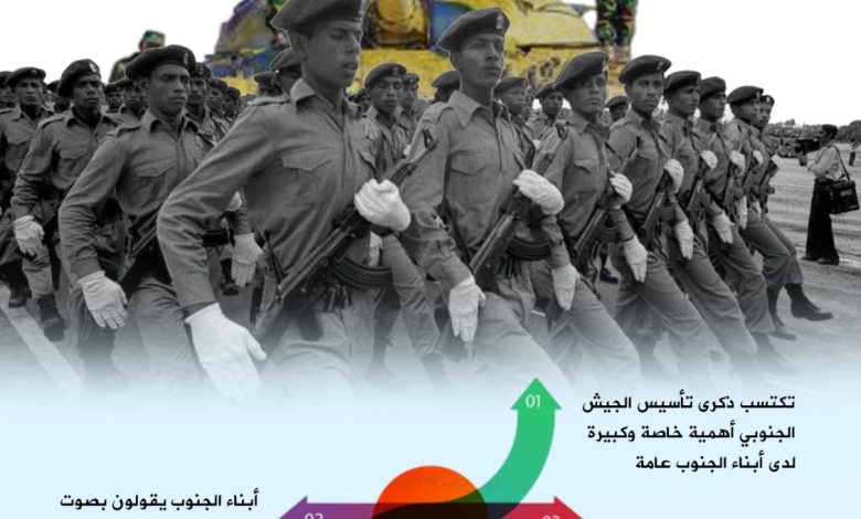 وأشار جنوبيون إلى انه في زمن تتعدد فيه التحديات، أثبت الجيش الجنوبي بأنه الحامي الأول للجنوب وأمنه واستقراره، وهو المدرسة التي تخرّج منها الشرفاء، وهو الحصن المنيع في وجه المؤامرات. وله مكانة تاريخية كأحد أعمدة النضال التحرري لشعب الجنوب، وقد برز دور الجيش الجنوبي في حماية السيادة الوطنية والهوية الجنوبية الممتدة من المهرة شرقًا إلى باب المندب غربًا.