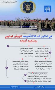 إن جيش الجنوب لم يكن يوماً قوة عسكرية فحسب، بل مدرسة وطنية عظيمة خرّجت رجالاً أشداء وقادة أوفياء، يجسدون اليوم أسمى معاني الفداء في ميادين الشرف والبطولة، ليبقى الجنوب عصياً على الغزاة، صامداً في وجه كل التحديات وذو إسهامات حقيقية في حماية أمن المنطقة واستقرارها، وشريكاً فاعلاً في منظومة الأمن والسلام الدوليين.