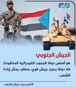 يدرك الجميع ويعرف الحقيقة تماماً بأن الجيش الجنوبي هو الضامن الأساسي لمستقبل الجنوب الحر والمستقر، والمعبّر عن تطلعات شعبه في التحرر، وتثبيت الأمن والاستقرار، والنضال المتواصل والمستمر حتى نيل الاستقلال وتحقيق تقرير المصير وعودة دولة الجنوب كاملة السيادة والقانون.