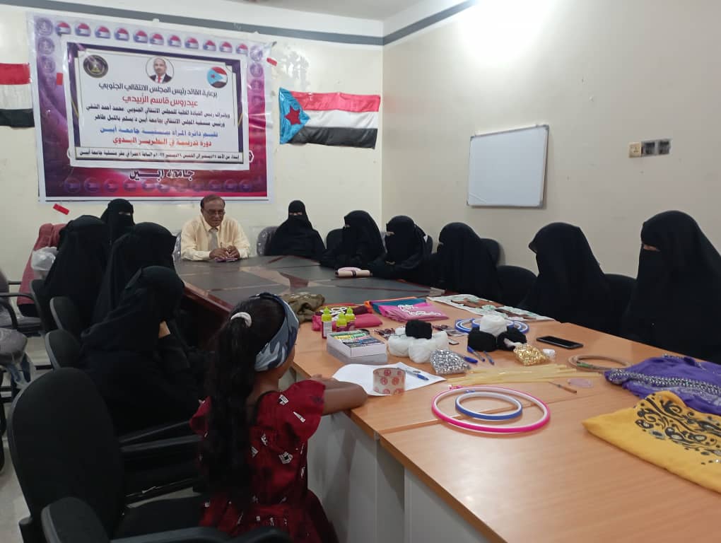 دائرة المرأة بمنسقية جامعة أبين تقيم دورة تدريبية في التطريز اليدوي.