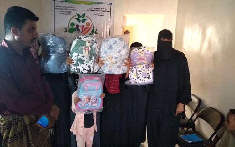 لافتة الى انه قد تم توزيع عدد 53 حقيبة مدرسية على عدد من الأيتام المستهدفين بمنطقتي حصن شداد والعصلة بمديرية زنجبار.
