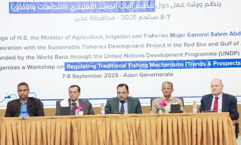 وخلال افتتاح الورشة أكد معالي وزير الزراعة والري والثروة السمكية اللواء سالم عبدالله السقطري أن تنظيم وتطوير قطاع الصيد التقليدي لم يعد خياراً ثانوياً،بل هو ضرورة وطنية قصوى،كونه يشكّل شريان حياة لعشرات الآلاف من الصيادين وأسرهم،ويمثل ركيزة أساسية للأمن الغذائي.ولذا فإن تحديث لائحة تنظيم الصيد التقليدي يُعد أولوية ملحّة، تهدف إلى مواجهة التحديات المتراكمة ومعالجة أوجه القصور في التشريعات الحالية.مشيراً إلى إن لائحة تنظيم الصيد التقليدي بصيغتها الحالية لم تعد قادرة على مواكبة متطلبات الصيد التقليدي في بلادنا والتحديات المتزايدة التي يشهدها القطاع السمكي،سواء من حيث التوسع في النشاط البحري أو تنامي ممارسات الصيد العشوائي وغير القانوني،ومن هنا فإن تحديث هذه اللائحة أصبح ضرورة ملحّة، تفرضها المصلحة الوطنية،لحماية الثروة السمكية وضمان استدامتها للأجيال القادمة.