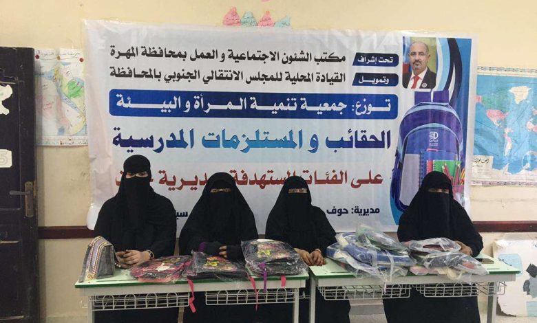 بدعم انتقالي المهرة… جمعية تنمية المرأة تنفذ مشروع توزيع المستلزمات المدرسية على الطلاب