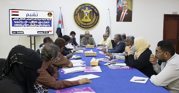 عقدت الدائرة السياسية في الأمانة العامة لهيئة رئاسة المجلس الانتقالي الجنوبي، اليوم الإثنين، اللقاء التشاوري الثالث مع مديري الإدارات السياسية في الهيئات التنفيذية للقيادات المحلية للمجلس بمحافظات الجنوب، بحضور الأستاذ فضل محمد الجعدي عضو هيئة الرئاسة نائب الأمين العام للأمانة العامة لهيئة رئاسة المجلس الانتقالي.
