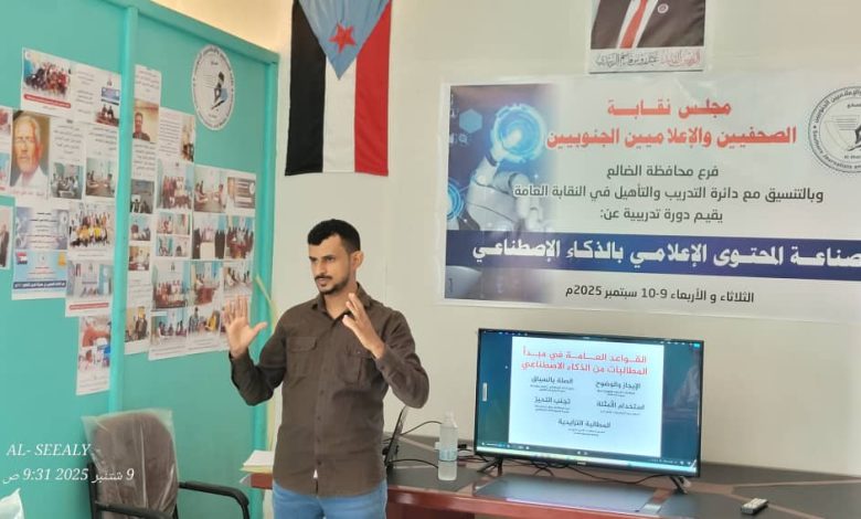 دورة تدريبية رائدة في نقابة الضالع خصصت لصناعة المحتوى الاعلامي بالذكاء الاصطناعي