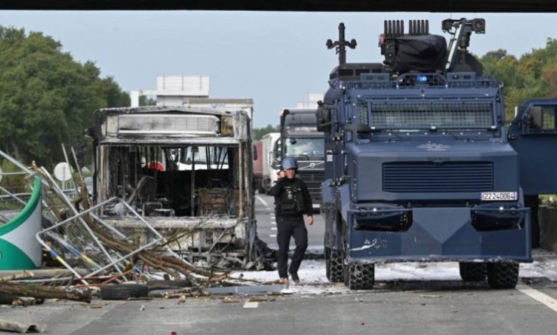 وقال وزير الداخلية برونو ريتيلو إنه تم إضرام النيران في حافلة بمدينة رين الغربية وأن الأضرار التي لحقت بخط كهرباء أدت إلى توقف حركة القطارات على خط في الجنوب الغربي. وزعم أن المتظاهرين كانوا يحاولون إثارة “مناخ من التمرد”.