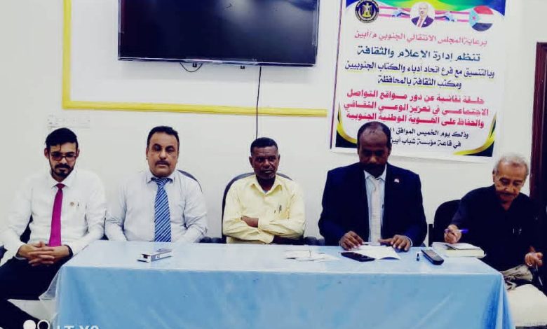 انتقالي أبين ينظّم حلقة نقاشية حول دور مواقع التواصل في تعزيز الهوية الجنوبية