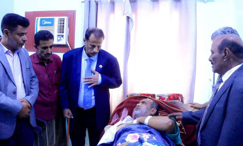 واثناء الزيارة قام الفريق بالاطمئنان على صحة رئيس القسم التنظيمي في تنفيذية انتقالي عسيلان، الاستاذ صالح سالم حقاش، الذي يرقد في المستشفى على اثر حادث مروري مروع أسفر عن إصابته ووفاة نجله وزوجة نجله وابنهما.