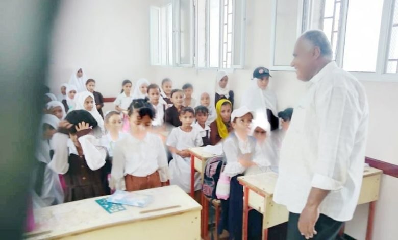 مدير تربية تبن بلحج يتفقد سير العملية التعليمية بمدرسة الحمزة بمنطقة اللحوم بالمديرية
