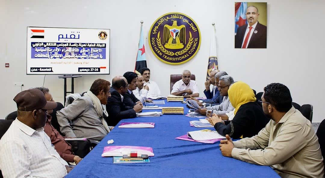 اختتمت الدائرة السياسية في الأمانة العامة لهيئة رئاسة المجلس الانتقالي الجنوبي، اليوم الثلاثاء، اجتماعها السنوي الثالث مع مديري الإدارات السياسية في الهيئات التنفيذية للقيادات المحلية للمجلس بمحافظات الجنوب.