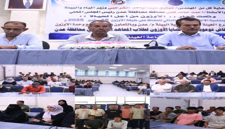 دشن صباح اليوم في العاصمة عدن برعاية كلا من المهندس/ توفيق عبد الواحد الشرجبي وزير المياه والبيئة، والأستاذ أحمد حامد لملس محافظ عدن رئيس المجلس المحلي، فرع الهيئة العامة لحماية البيئة ـ عدن، وبالتعاون والتنسيق مع وحدة الأوزون، حلقة نقاش توعوية حول قضايا الأوزون لطلاب المعاهد التقنية تحت شعار “الأوزون من أجل الحياة”، بمناسبة الاحتفال باليوم العالمي للحفاظ على طبقة الأوزون الموافق 16 سبتمبر 2025م.