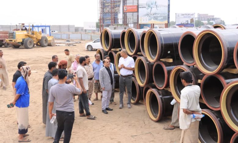 وصول الدفعه الاولى من أنابيب المشروع الاستراتيجي للصرف الممتد من جولة القعيطي وصولا الى مضخة العريش بساحل ابين
