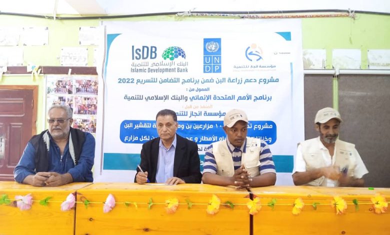 دشنا مدير عام يهر أ.محضار علوي عوض ومدير مكتب الزراعة والري أ. محمد عبدالحافظ يوسف دورة تدريبية مشروع دعم زراعة البُن ضمن برنامج التضامن للتسريع والممول من برنامج الأمم المتحدة الإيمائي والبنك الإسلامي للتنمية المنفذ من قبل مؤسسة إنجاز للتنمية مشروع تدريب عدد (10) مزارعي البُن مديرية يهر يافع محافظة لحج ومنحهم آلة لتقشير البُن وخزانات لجمع مياه الأمطار و (15) شتلة بُن لكل مزارع ، وبحضور المدرب المهندس الاستشاري علي عبدالرحمن والمهندس فوزي عدنان سعيد والاعلامي ماجد صالح باعوض .