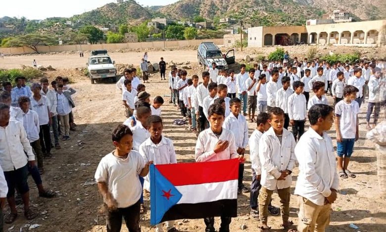 انتقالي يافع سباح يواصل فعاليات رفع أعلام الجنوب وترديد النشيد الوطني في مدارس المديرية