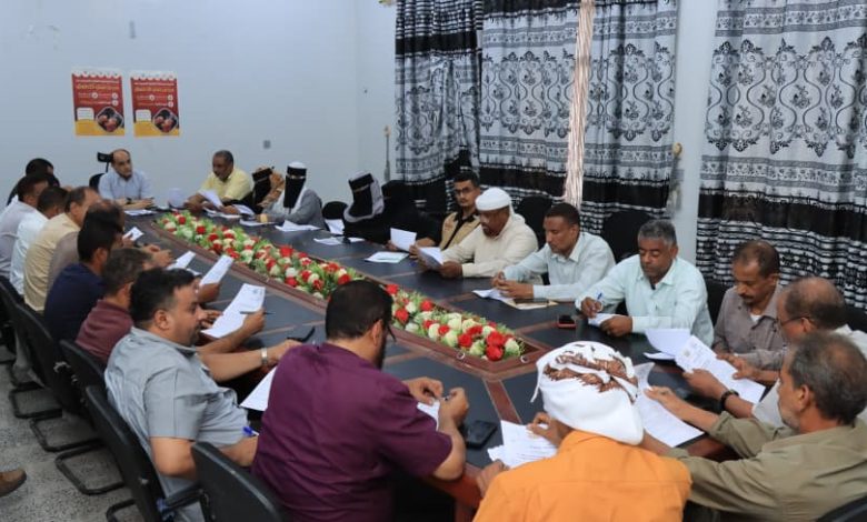 كما تناول الاجتماع تقييم العمل في المشاريع الخدمية الجاري تنفيذها بمختلف القطاعات ومستوى الإنجاز فيها بالإضافة الى الملفات الأخرى ، التي شملت عدد من أعمال المكاتب الخدمية ، وخرج الإجتماع بعدد من التوصيات والقرارات الهادفة إلى تفعيل عمل السلطة المحلية في مختلف المؤسسات والمرافق بالمديرية.