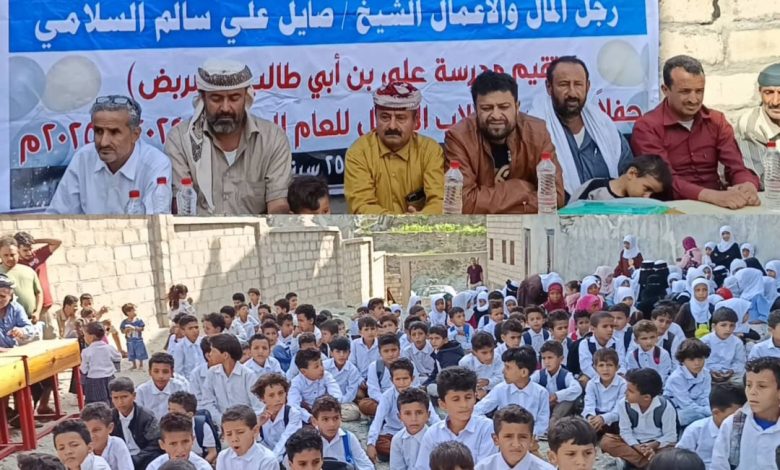 برعاية رجل الأعمال الشيخ صايل علي سالم السلامي وفي أجواء بهيجة ومفعمة بالفخر والاعتزاز شهدت مدرسة علي بن أبي طالب “المربض” بمديرية يافع رصد محافظة أبين صباح يوم الخميس 2 أكتوبر 2025م حفلاً تكريمياً لتكريم طلابها الأوائل للعام الدراسي 2025/2024م إلى جانب تكريم نخبة من المعلمين المتميزين والداعمين للمدرسة، والشخصيات الاجتماعية التي كان لها إسهام بارز في دعم العملية التعليمية والتربوية.