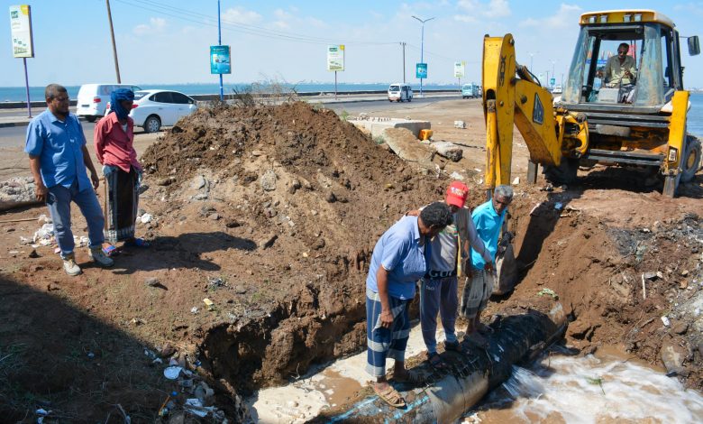 وأكد مدير المنطقة الأولى بمؤسسة مياه عدن المهندس أحمد خالد، أن فرق المؤسسة تبذل جهوداً كبيرة وبحسب الامكانيات المتاحة لديها لإصلاح الكسر وضمان وصول خدمة المياه لمديريات محافظة عدن.